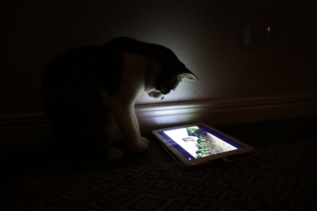 Talessättet “som katt och råtta” har man ju hört talas om. Men uttrycket “katt o padda” kanske inte är lika vedertaget. Den här katten tycktes iallafall trivas och sysselssätta sig i dessa tider med hårda restriktioner.